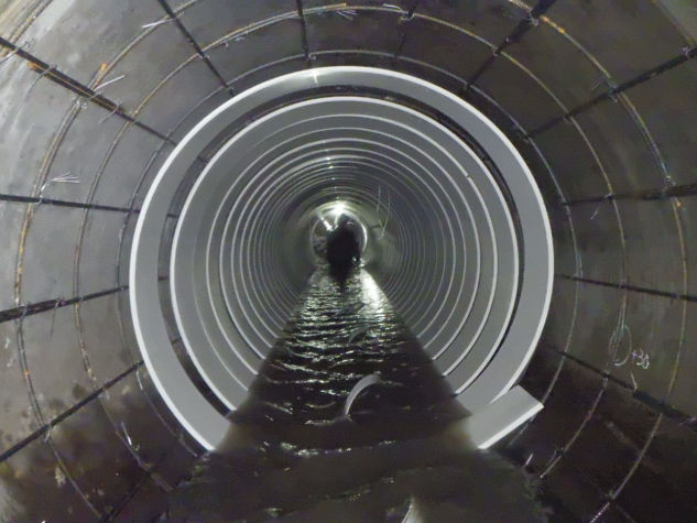 内丸地域の下水道管の老朽化が進んでいた為、機能の維持・延命を目的とした工事です。FFT-S工法による管きょ更生工事を行いました。施工延長 L=169.1m