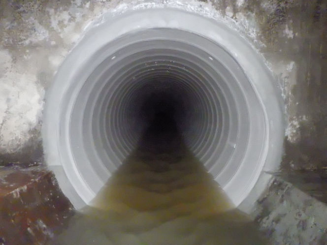 内丸地域の下水道管の老朽化が進んでいた為、機能の維持・延命を目的とした工事です。FFT-S工法による管きょ更生工事を行いました。施工延長 L=169.1m